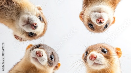 Curious ferrets looking down in a playful and endearing arrangement
