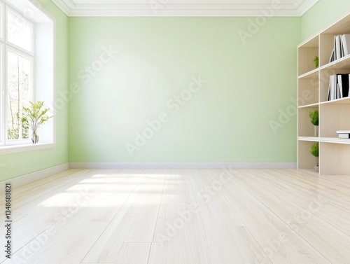 Wand im Zimmer einer leeren Wohnung mit Balkon