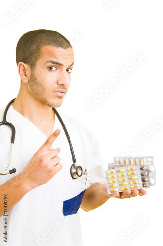 Arzt zeigt auf Taschenrechner