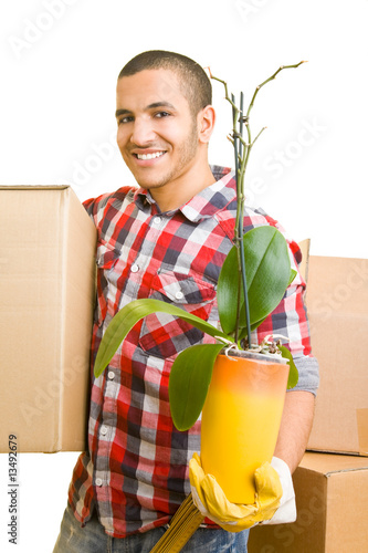 Lächelnder Bauarbeiter mit Verkehrsleitkegel