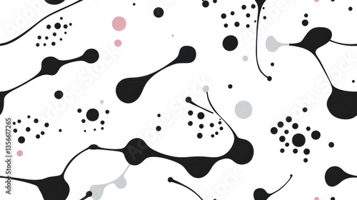 Abstract seamless organic black and pink blobs on a white patterned background
