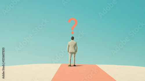 Businessman standing at a crossroads with a question mark overhead
