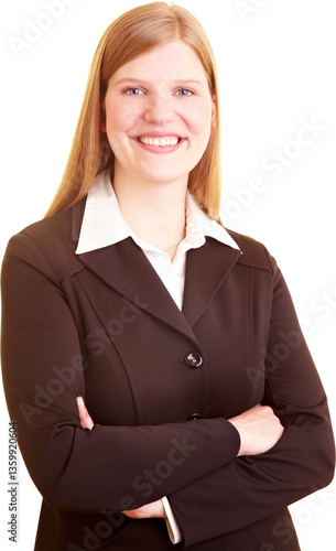 Blonde Geschäftsfrau verschränkt ihre Arme