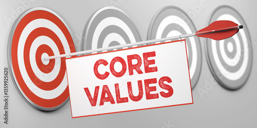 Pfeil mit Schriftzug Core Values in Zielscheibe als Business Konzept