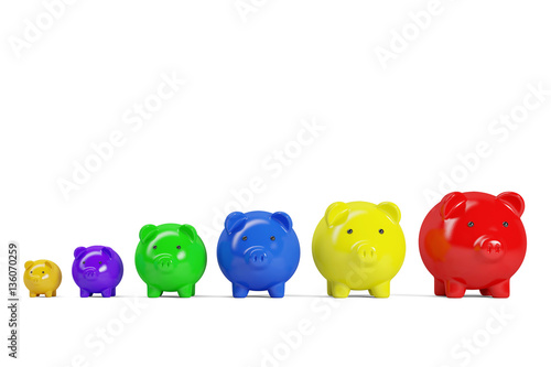Fünf Sparschweine in einer Reihe