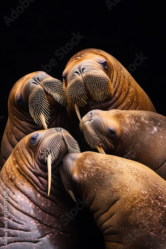 Majestic Walrus Portrait with Prominent Tusks in Studio