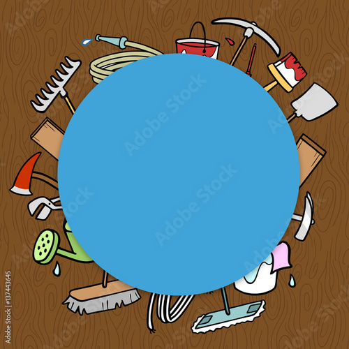 Werkzeug vom Handwerk als Hintergrund auf Holz