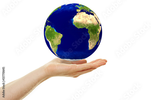 Hand holding green grassy Earth globe symbolizing environmental awareness and sustainability