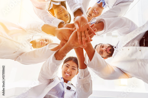 Panorama aus Silhouetten von Geschäftsleuten vor bunten Business Portraits