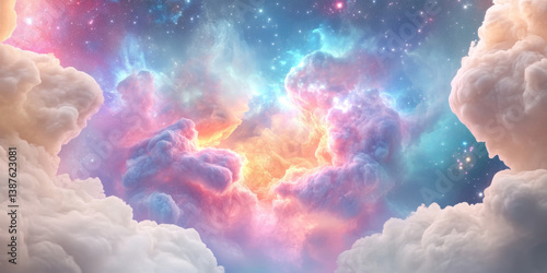 Pastel-colored dreamy sky with soft clouds and gentle lights