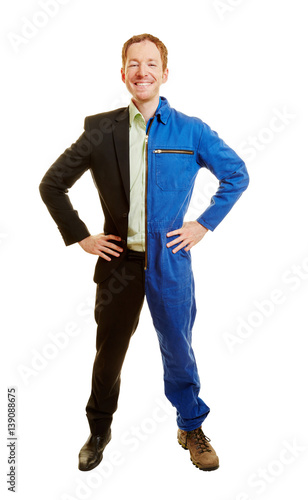Lächelnder Geschäftsmann mit Händen in der Hüfte