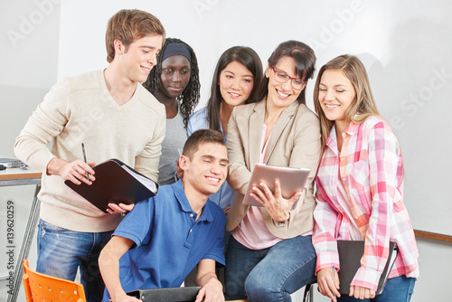 Schüler und Lehrer mit Tablet Computer