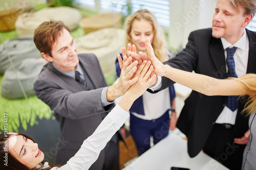 Buntes Panorama von Geschäftsleuten vor einfarbigen Hintergründen