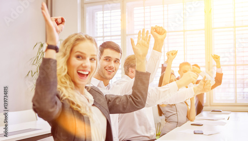 Panorama aus Silhouetten von Geschäftsleuten vor bunten Business Portraits