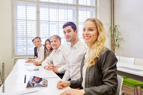 Panorama aus Silhouetten von Geschäftsleuten vor bunten Business Portraits