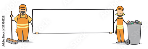 Cartoon Müllabfuhr Team mit Schild