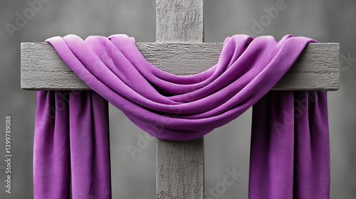 Wooden cross with purple cloth symbolizing Easter reflection and sacrifice