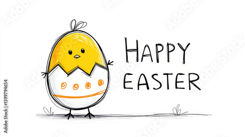 Playful Easter drawing featuring a chick hatching from a decorated egg