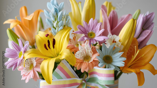 Easter floral arrangement including lilies, daisies, and vibrant springtime blooms