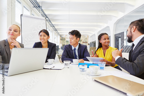 Panorama aus Silhouetten von Geschäftsleuten vor bunten Business Portraits