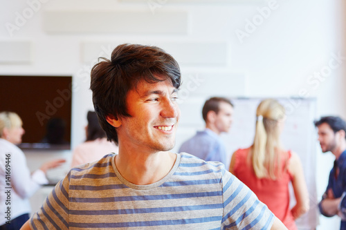 Geschäftsmann in Start-Up Firma lächelt stolz