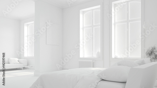 Komplett weißes Schlafzimmer in Altbauwohnung