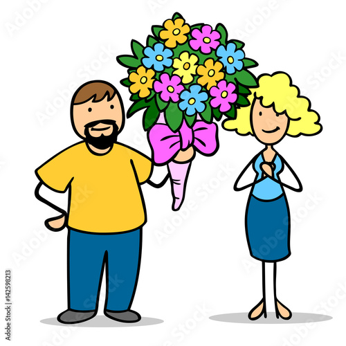 Cartoon Arzt unterstützt Frau bei Seniorenturnen mit Medizinball