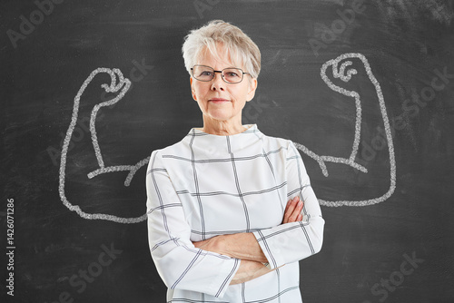 Selbstbewusste ältere Business Frau mit Muskel Armen