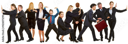Geschäftsleute schieben und drücken unsichtbare Wände