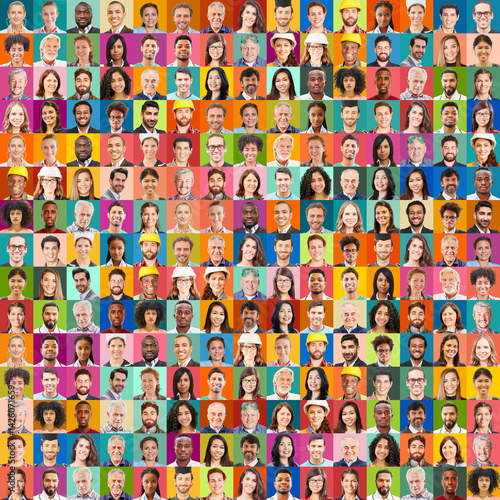 Portrait Collage erwachsener Menschen vieler Generationen als Quadrat