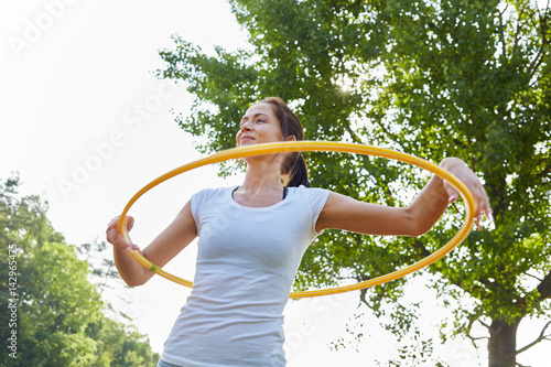 Junge Frau turnt mit Reifen