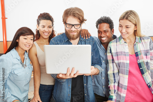Studenten mit Laptop freuen sich über Innovation