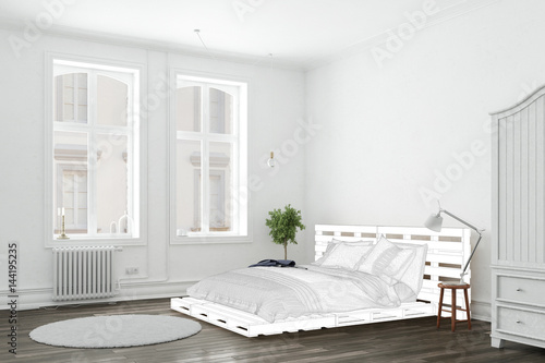 Schlafzimmer mit Umriss von Palettenbett