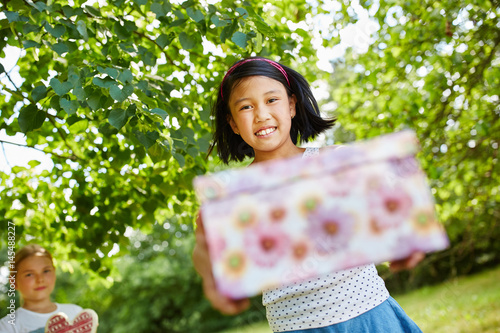 Girl with birthday gift at birthday party