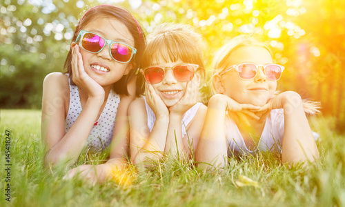 Multikulturelle Kinder mit Sonnenbrillen im Sommer