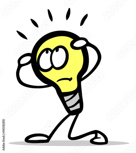 Cartoon Glühbirne Figur schaut fassungslos schockiert