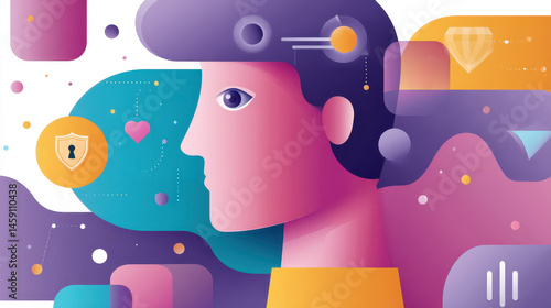 Abstract artwork highlighting ethical artificial intelligence concepts and symbolic traits