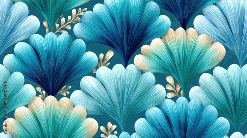 Decorative flowers with golden leaves as wallpaper background (Generative AI)