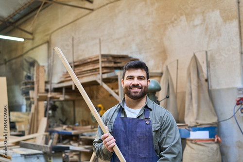 Experienced craftsman teaching young apprentice in a woodworking shop