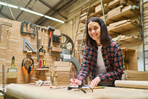Experienced craftsman teaching young apprentice in a woodworking shop