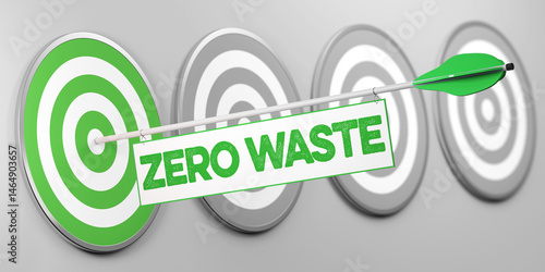 Pfeil mit Schriftzug „Zero Waste“ als Volltreffer in Zielscheibe