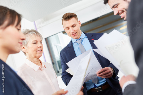 Panorama aus Silhouetten von Geschäftsleuten vor bunten Business Portraits