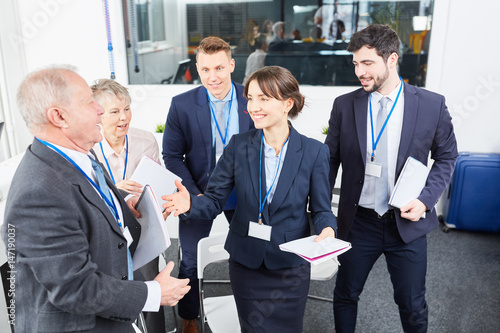 Panorama aus Silhouetten von Geschäftsleuten vor bunten Business Portraits
