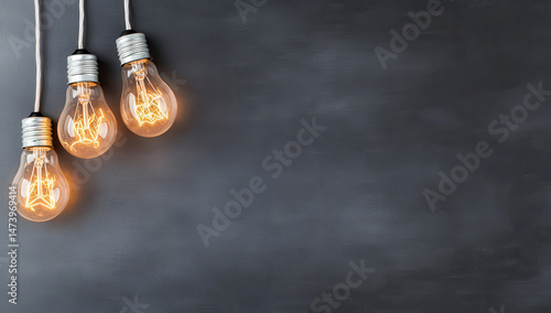 Hanging light bulbs with a glowing filament in a soft blurred ambiance