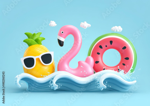 Pink flamingo inflatable floats adorning a serene swimming pool