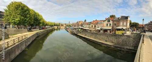 Beautiful town river panorama with historic buildings and scenic waterfront views