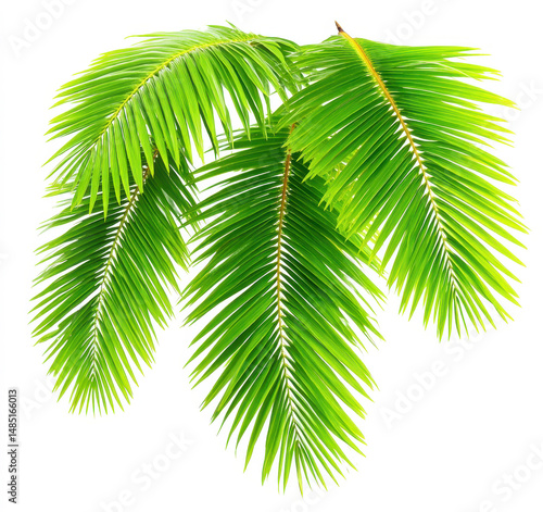 Vibrant green palm leaves arranged in an elegant flat lay on a white background
