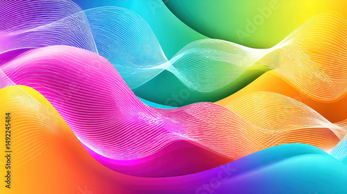 Vibrant kinetic art style abstract background with flowing rainbow colors