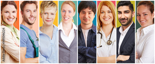 Vertikale Collage aus Portraits von Menschen in verschiedenen Berufen