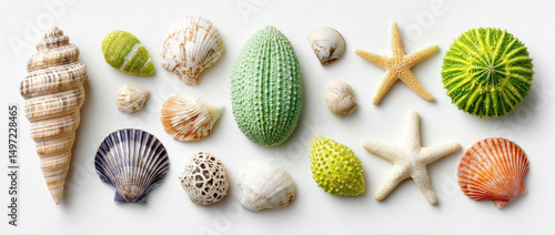 Panoramic view of a beach abundant with seashells scattered on the ground